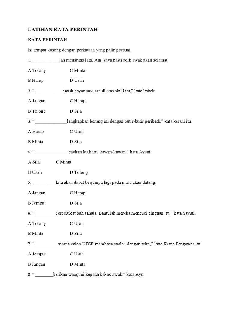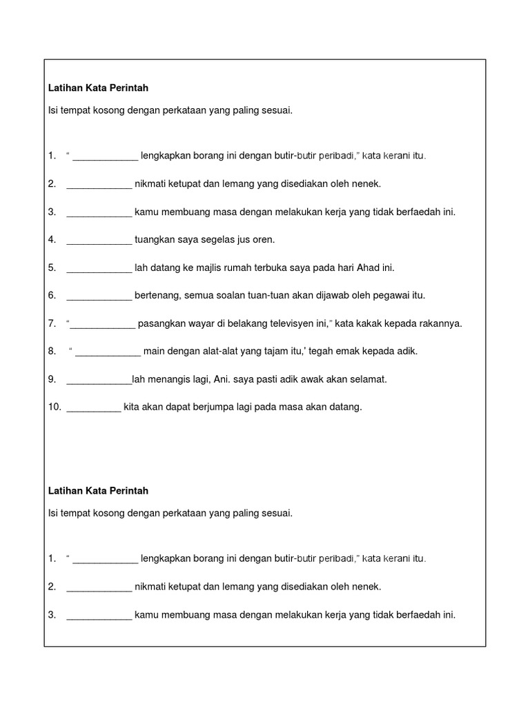 Latihan Kata Perintah Bm Tahun 5 Padankan
